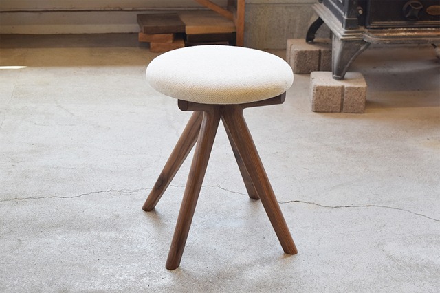 座の下から覗く木口が印象的なスツールです。 壁にぴったり寄せることが出来るので、使わない時も収まり良く置くことが出来ます。 【サイズ】 座面径ø350 × H450mm(張り座) 【材種】 ブラックウォールナット 【仕上げ】 オイル又はウレタン塗装 【張り地について】 カタログよりお選びいただきます。 →シンコール社 https://sincol-group.jp/digitalcatalog/leather2024/ https://sincol-group.jp/digitalcatalog/textile2023/ 他の材種での制作や脚のカットなどにもお応えできます。 例)・ホワイトオーク ・ブラックチェリー ・ハードメープル ・ビーチ など... どうぞお気軽にご相談ください。 板座タイプ→https://akiyaseisaku.base.shop/items/111406522 ハイスツール→https://akiyaseisaku.base.shop/items/111406871