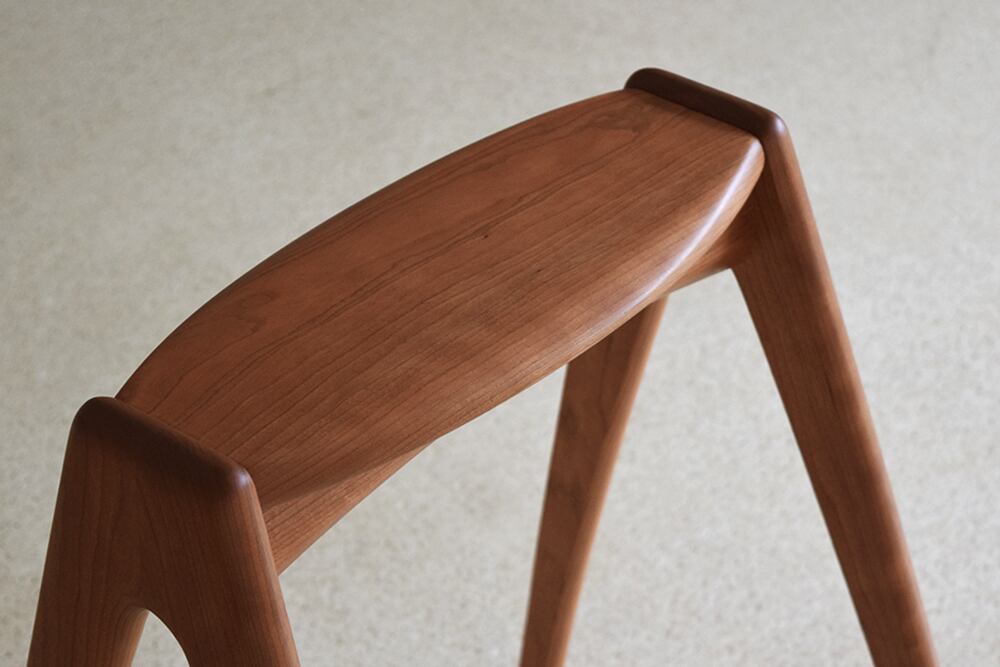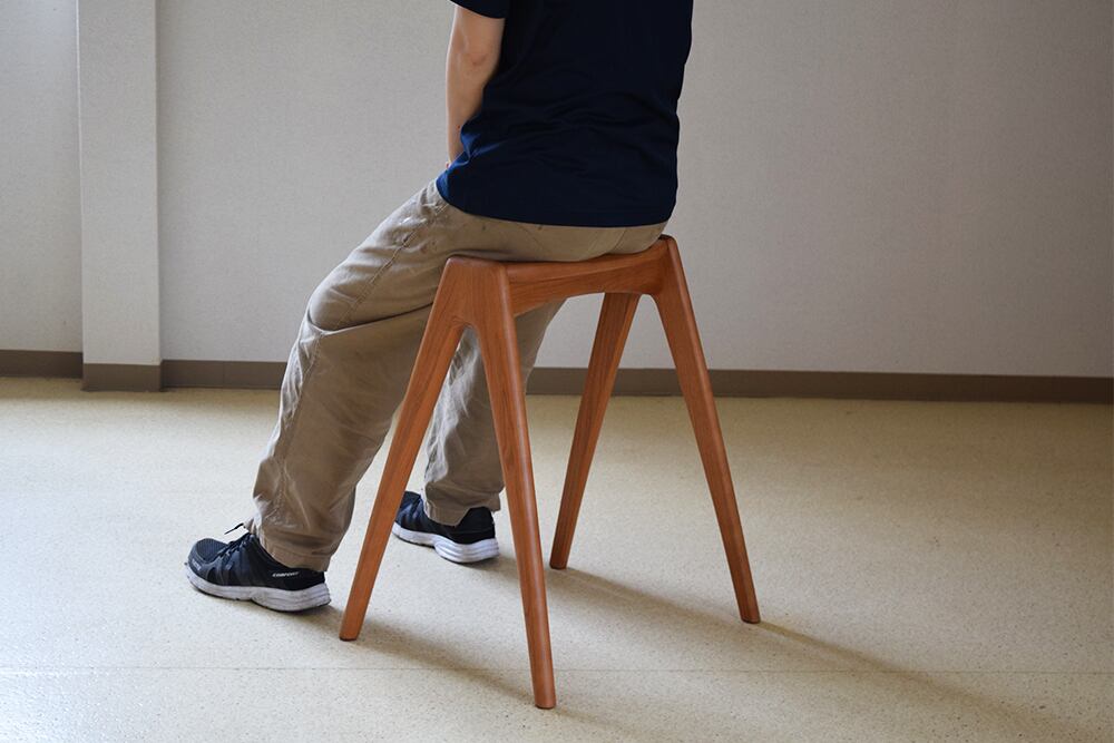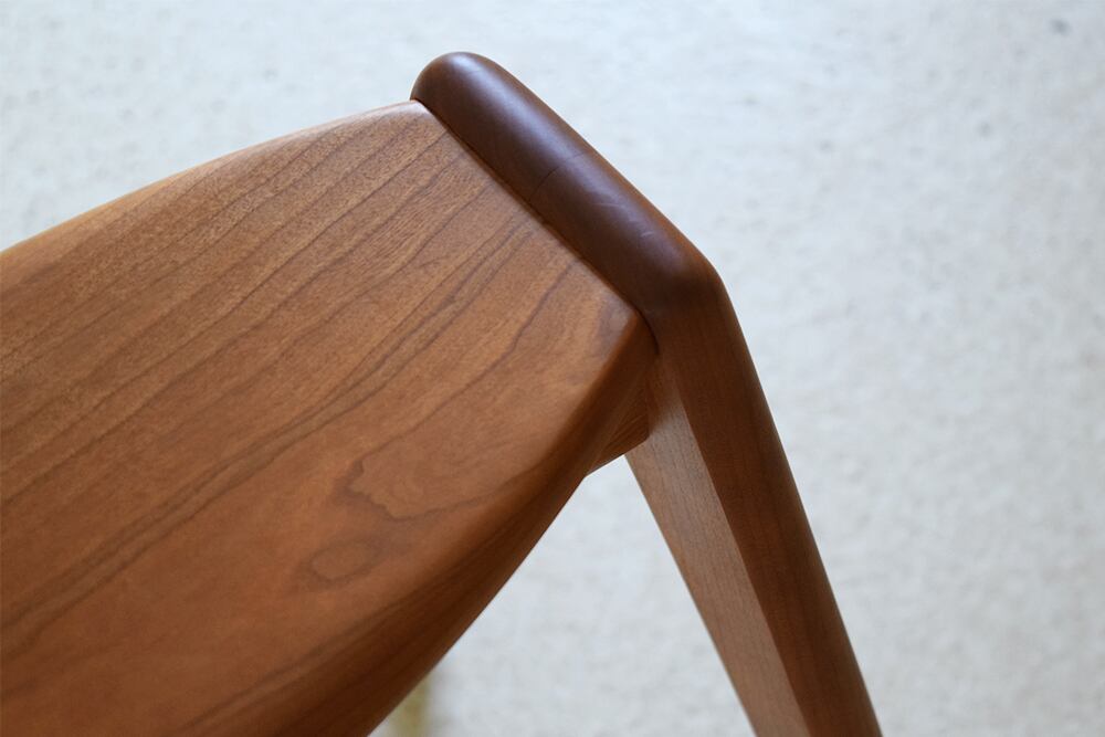 座面の奥行きを浅めにお作りしているので腰掛けやすく、手が触れる箇所は丸く面を取っているので滑らかな触り心地です。